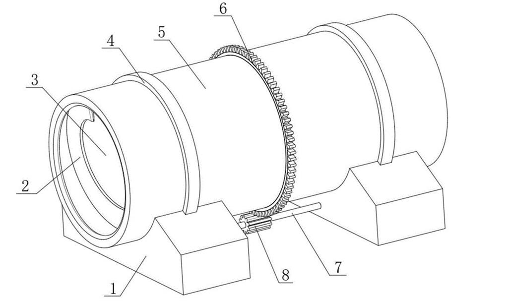 轉鼓造粒機整個機體轉動部分都由托架支撐,受力較大。因此該機托輪架部分均采用中碳鋼板、槽鋼焊接而成,并通過了嚴格的質量控制和特殊的工藝要求,已達到本機所使用的目的。除此外更重要的是固定在架子上的拖輪,因考慮到其與機體滾帶會產生較大摩擦,我廠特意選用防腐、耐磨材料,大大提高了本機的使用壽命,托輪架也采用鑄造一體技術。另在托輪架四角設有吊裝鉤,便于裝卸運輸。