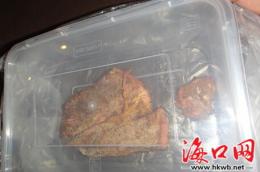 執法人員準備封存送檢的牛肉。 陳先生夫婦到海甸島三東路與人民大道交匯處某茶藝快餐廳就餐時,發現全熟的牛排肉體內有疑似已經死亡的蟲子類物體,要求餐館負責人與其一道將該食物送到附近醫院化驗遭拒后,遂向食品藥品監督管......