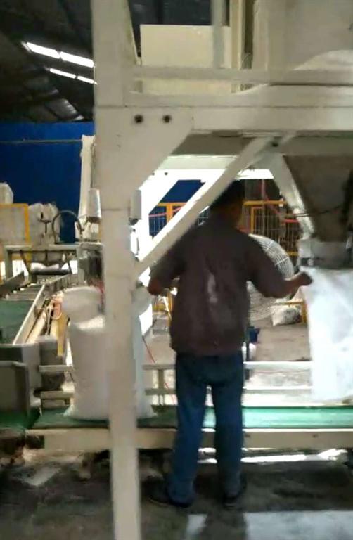 工人正在使用衡水隆昌豹牌計(jì)量包裝設(shè)備進(jìn)行包裝。